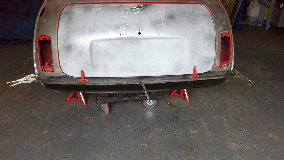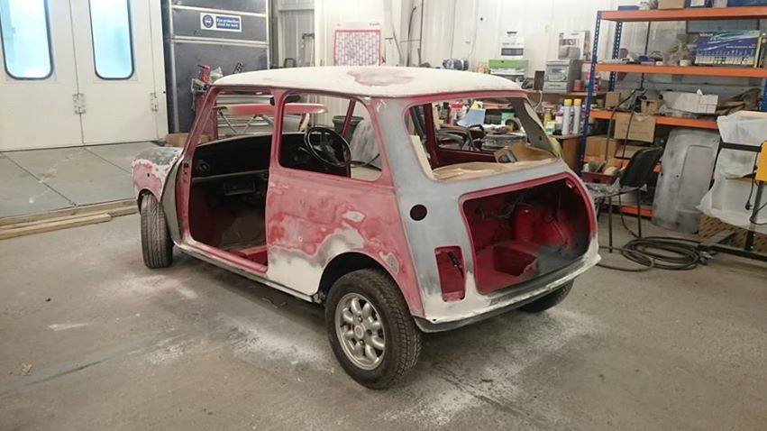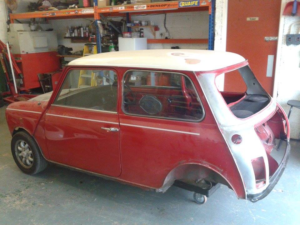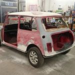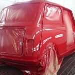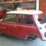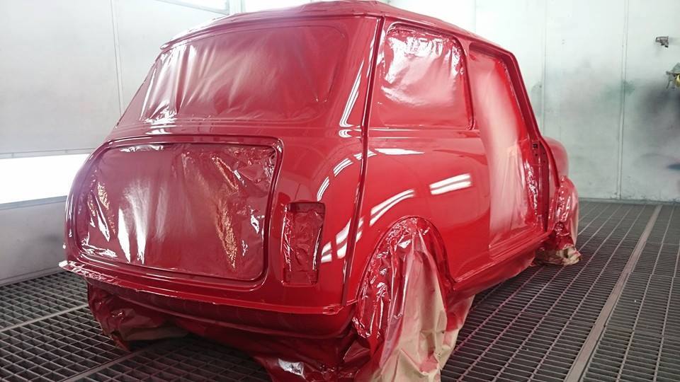 The Mini did not need any major panel work so we fitted new A panels, rear hinge panel, rear valence plus various small repairs. Our painter then prepared the mini and gave it a top class paint job in red with a white roof.